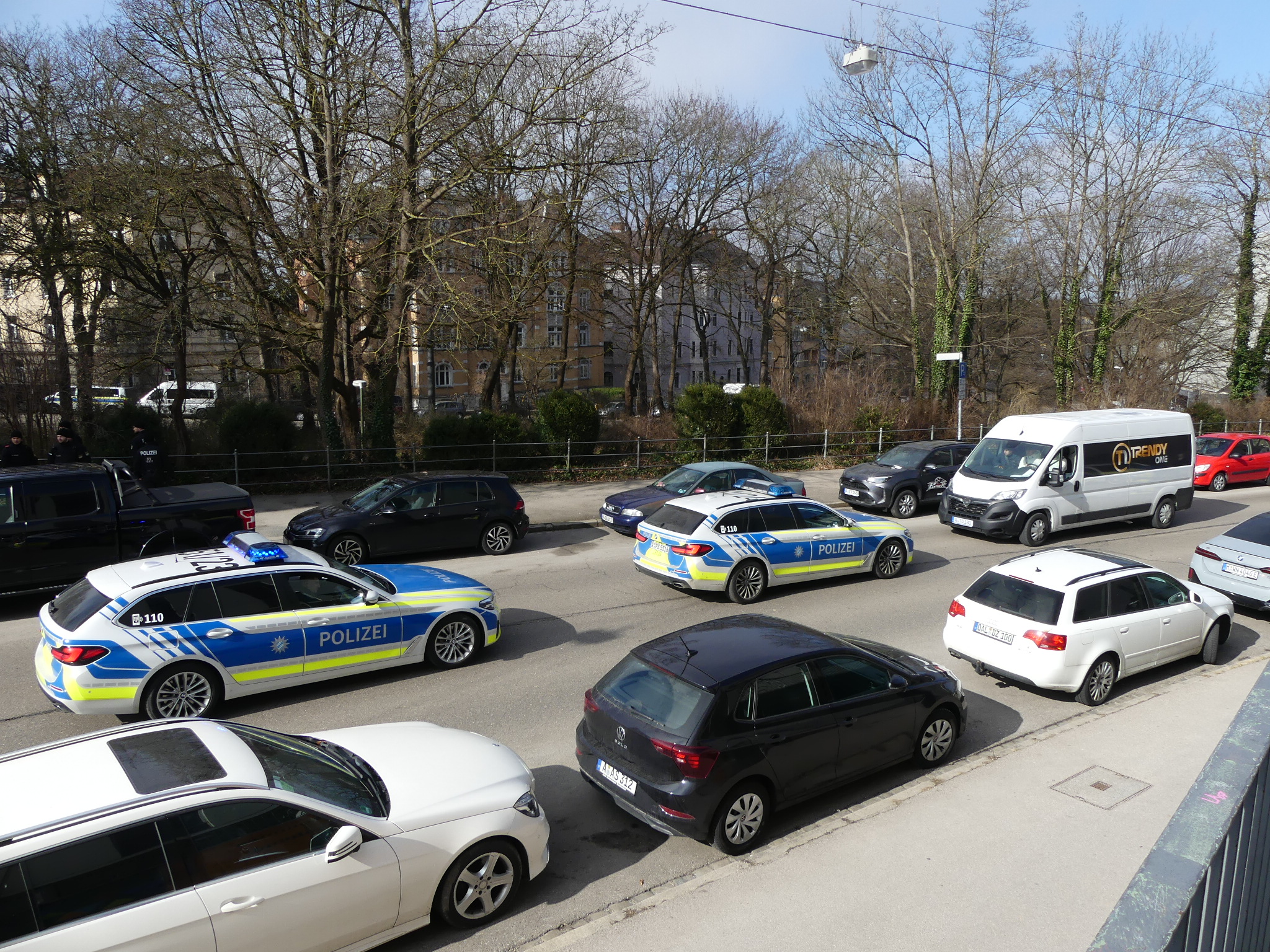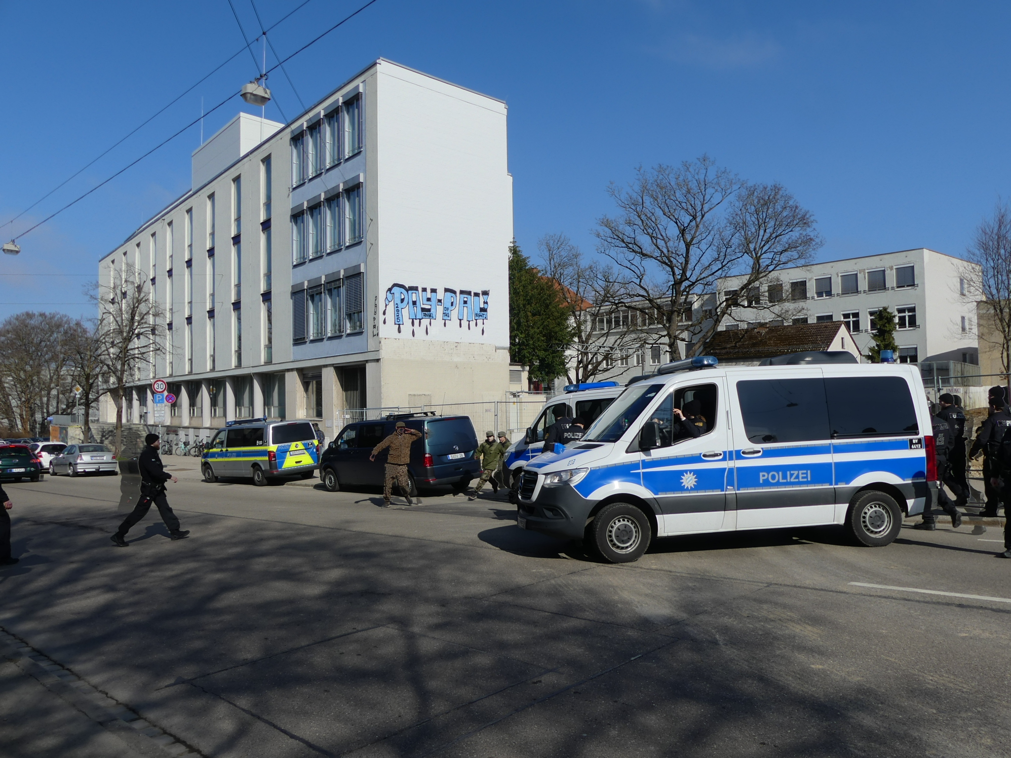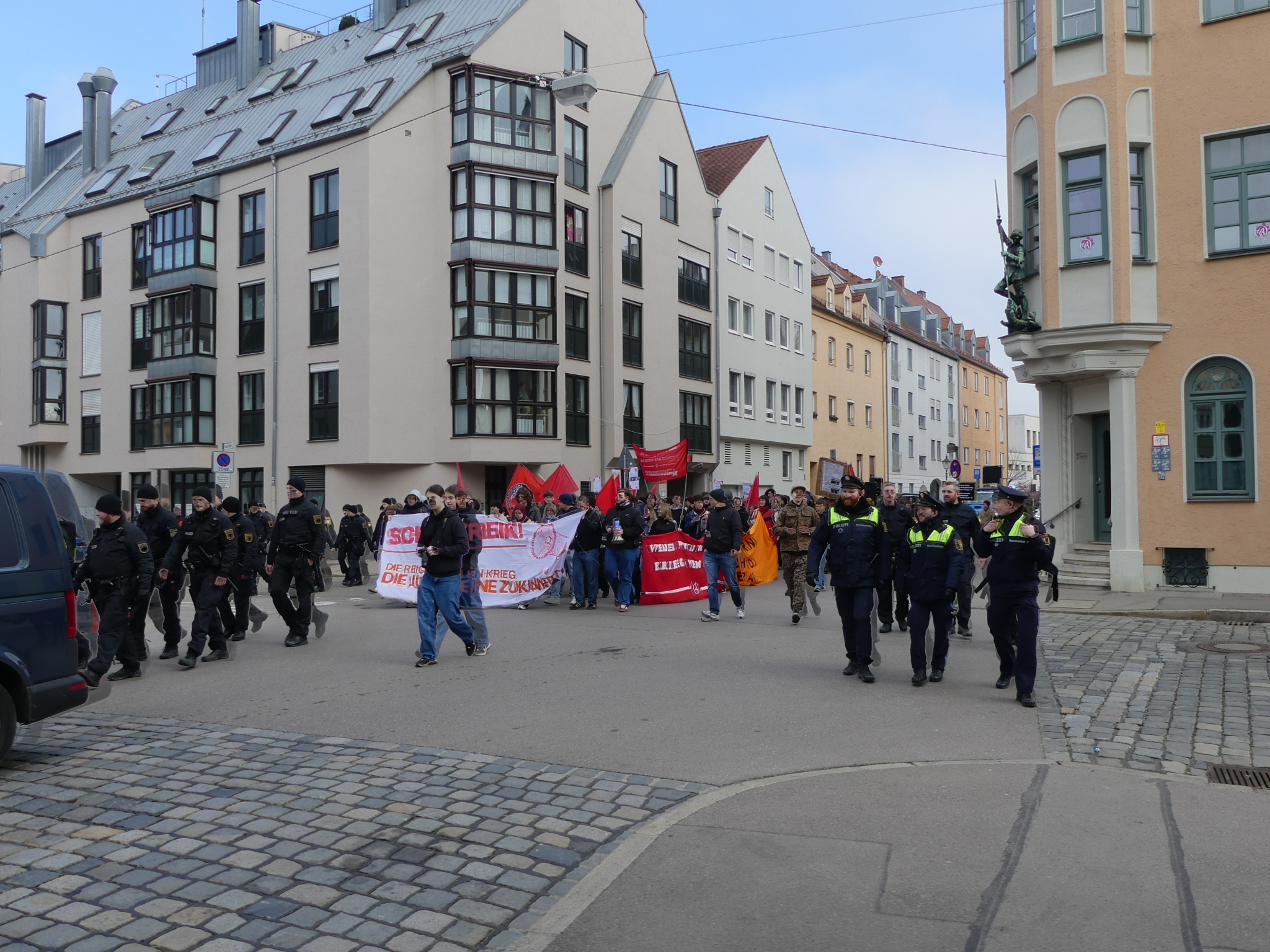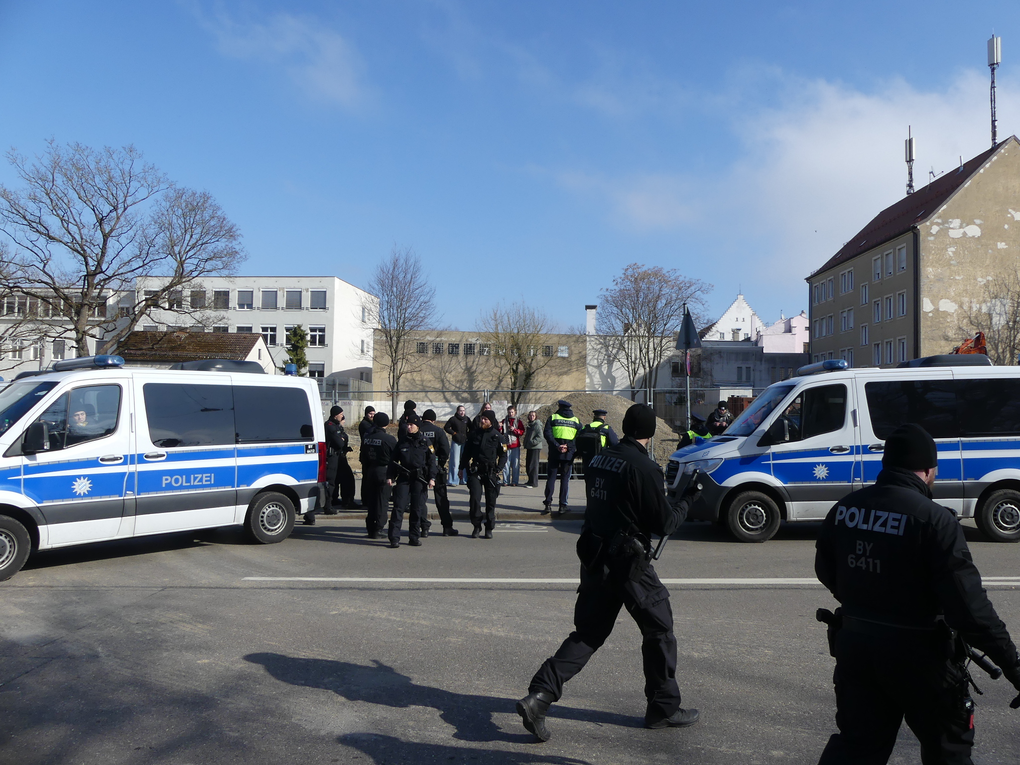Abschluss der Versammlung: Der bis dahin weitgehend störungsfreie Aufzug endete auf Höhe des Peutinger-Gymnasiums. Im unmittelbaren Anschluss an die Beendigung der Demonstration kam es zu einer Situation, die ein kurzzeitiges Einschreiten der Polizeikräfte erforderlich machte.