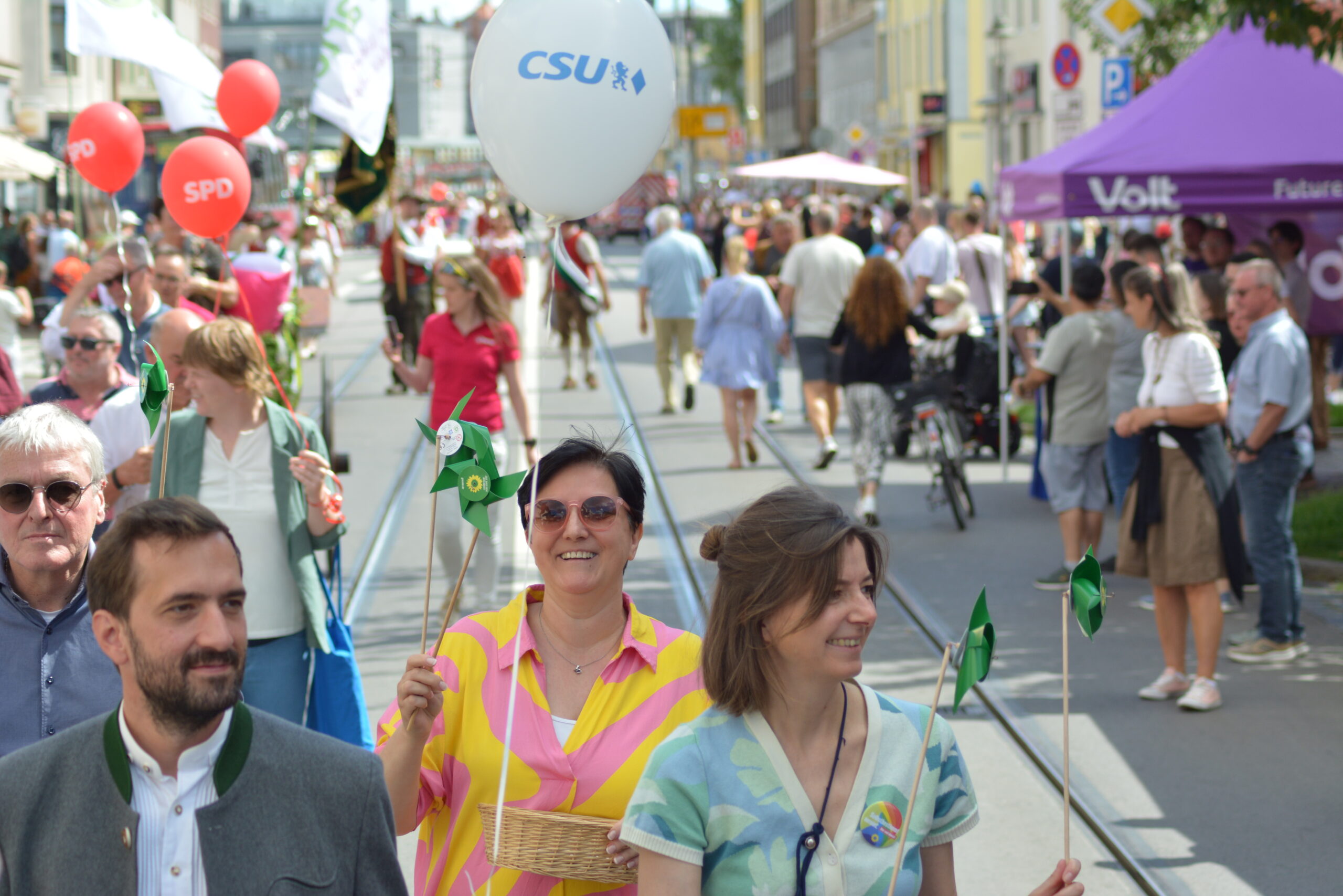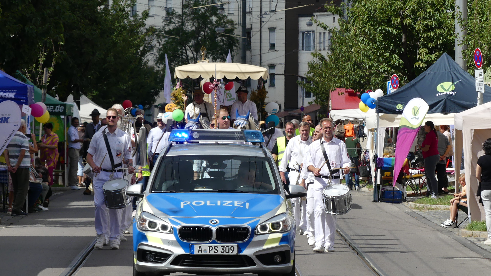 Im Anschluss zog ein farbenfroher Festumzug mit zahlreichen Vereinen, Gruppen und Musikkapellen durch die Ulmer Straße und sorgte für eine ausgelassene Stimmung. Entlang der Festzone boten Händler, Vereine und Organisationen eine große Vielfalt an Ständen und Aktionen. Auch die Geschäfte in der Ulmer Straße hatten von 13 bis 18 Uhr geöffnet und luden zum entspannten Einkaufsbummel ein.